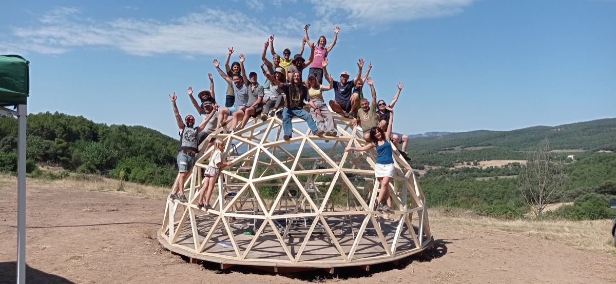 Bajo el influjo de «las Machotas», esas poderosas montañas que nos rodean, hemos llevado a cabo un curso de construcción de domos geodésicos. La amenaza de lluvia no ha detenido este evento, que hemos rematado con una charla sobre distintas formas de aislar un domo, por parte de Daniel Barrio, de Minka.