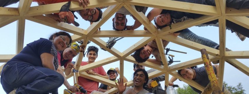 Se impartirá una clase teórica en la veremos en profundidad el procedimiento a seguir para la construcción del domo. Después pasaremos al taller y construiremos los triángulos necesarios para la confección de la estructura geodésica. Por la tarde empezaremos el montaje.
