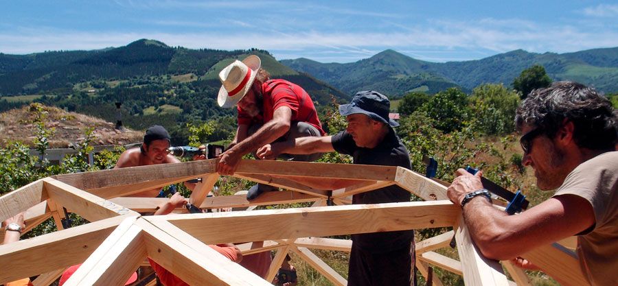 En un pequeño pueblo del interior rural de Barcelona, rodeados de pinares, construiremos un domo de 7 metros de diámetro. ¿Qué…?, ¿te animas?.