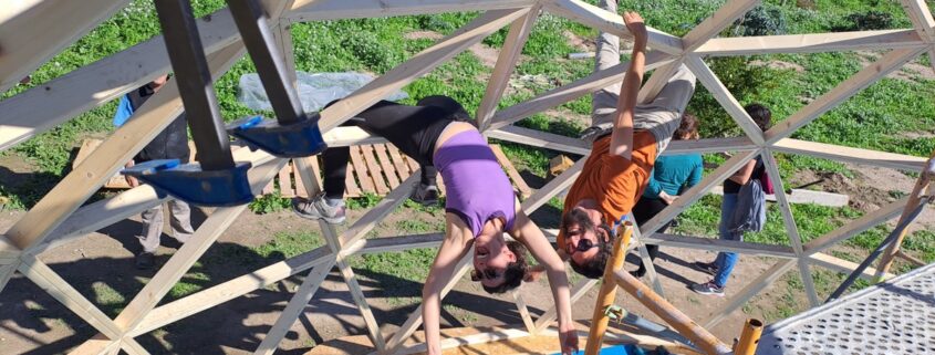 Se impartirá una clase teórica en la que veremos en profundidad el procedimiento a seguir para la construcción del domo. Después pasaremos al taller y construiremos los triángulos necesarios para la confección de la estructura geodésica. Por la tarde empezaremos el montaje del domo.