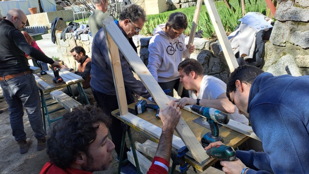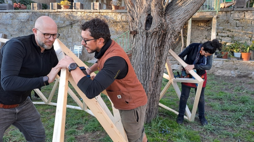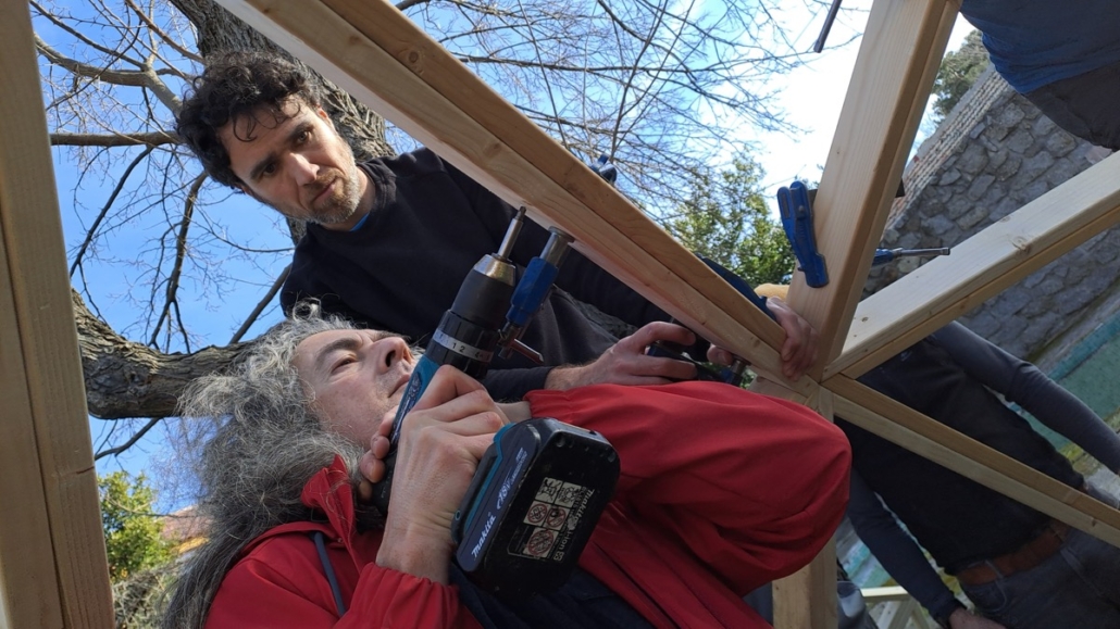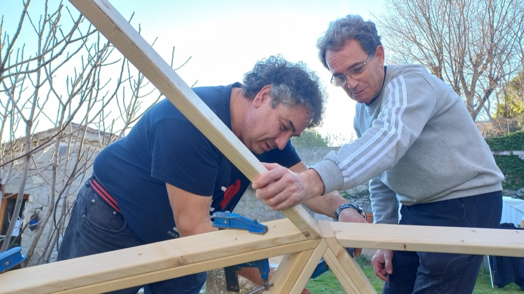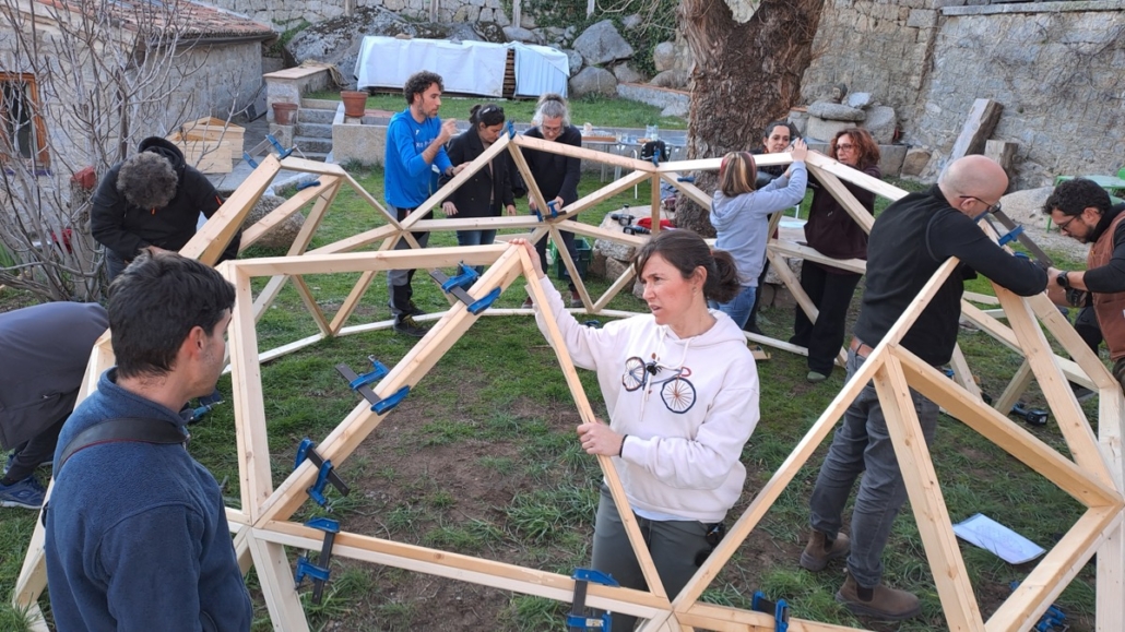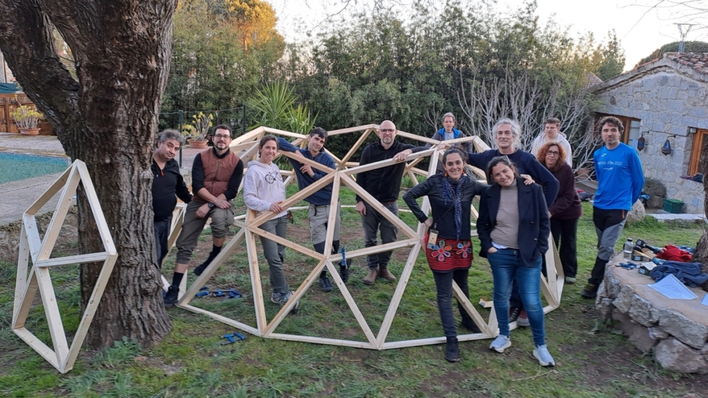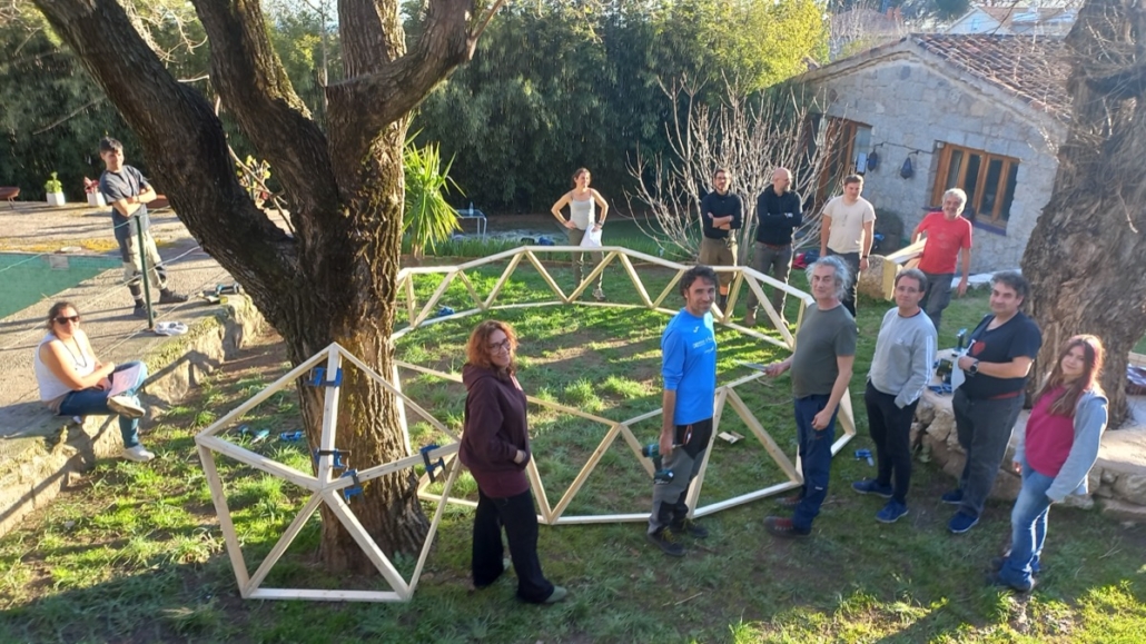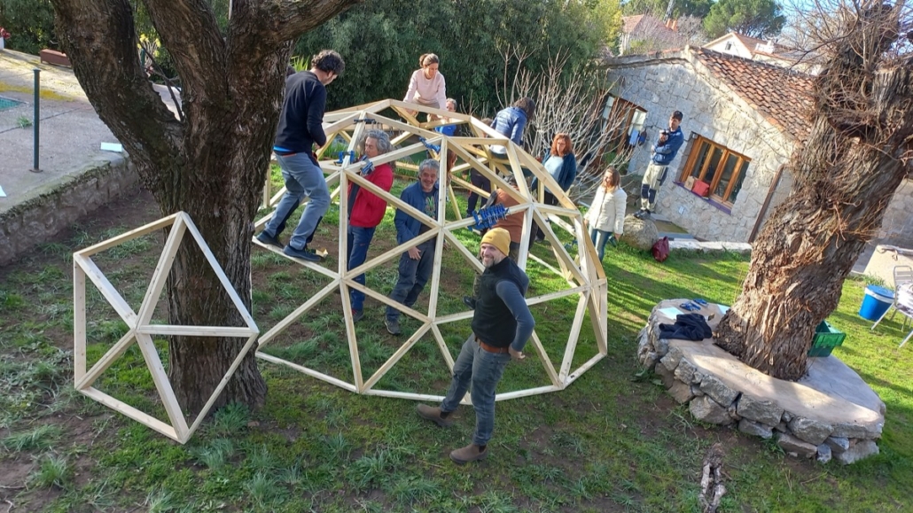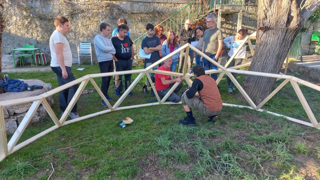 Durante este fin de semana, con un sol radiante que ha salido para nosotr@s después de más de un mes sin parar de llover, y con un grupo majísimo de personas majísimas, hemos impartido otro curso de construcción de domos geodésicos de madera sin conectores.