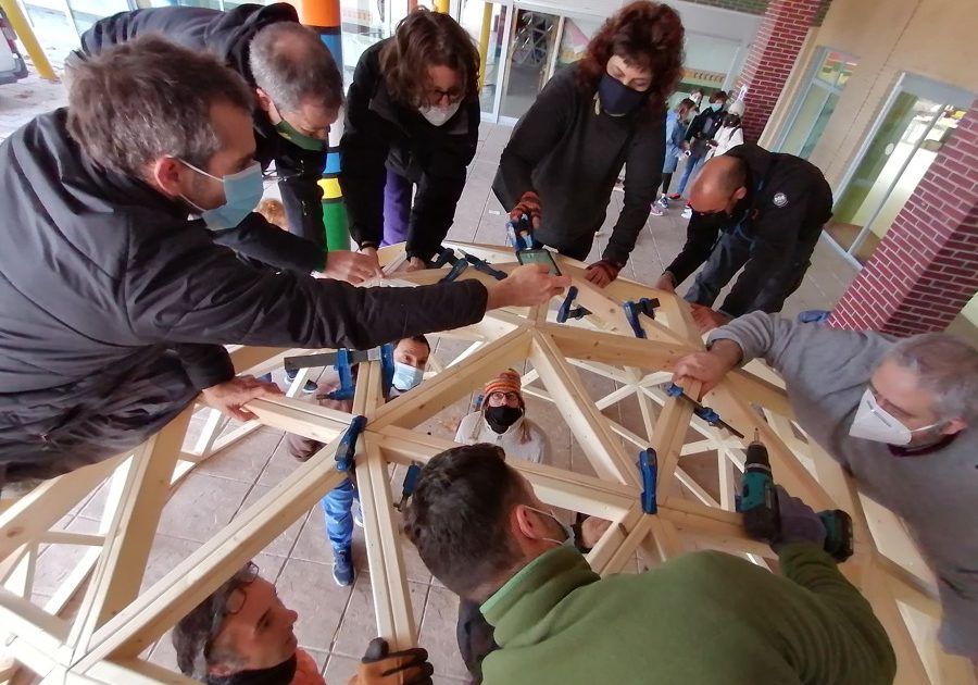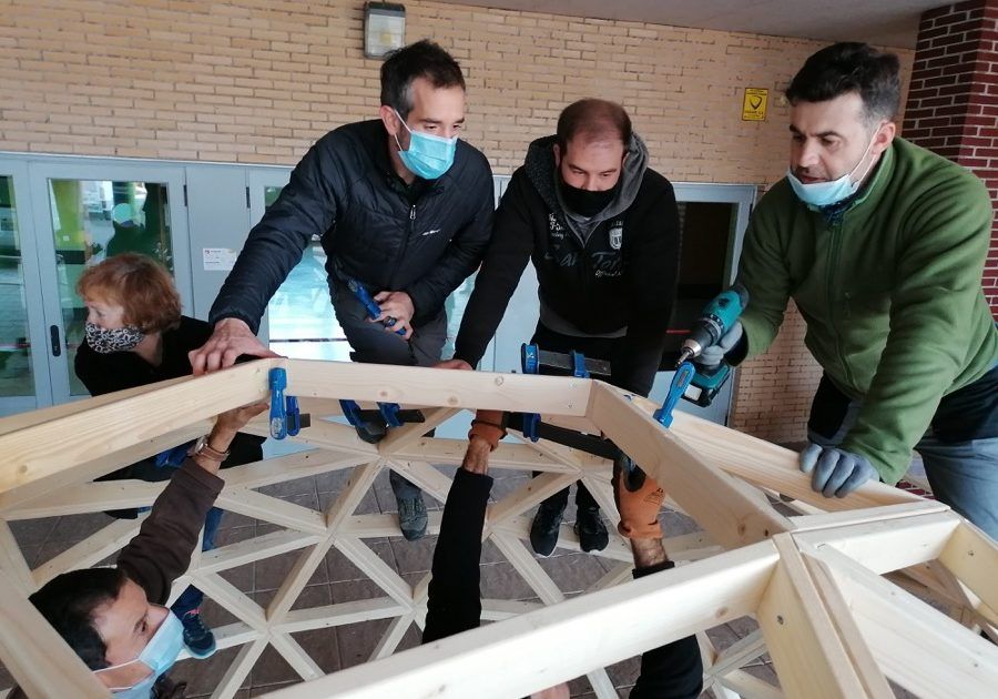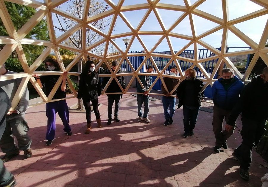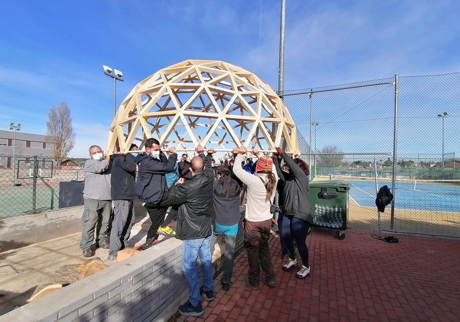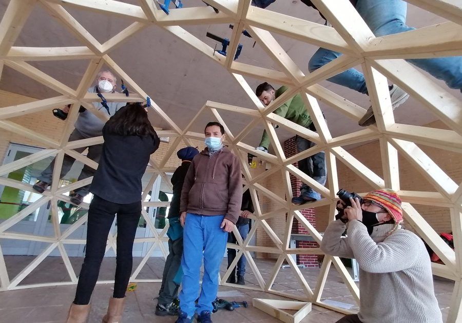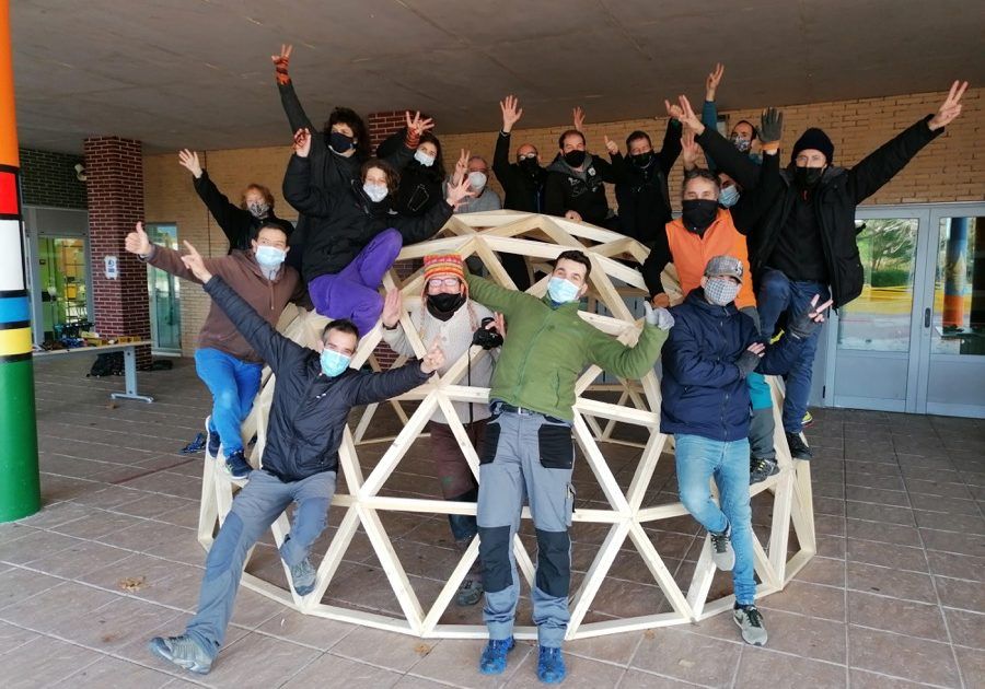 Como parte de un proyecto medioambiental que han puesto en marcha en este innovador Colegio ubicado en Villalbilla, Madrid, hemos construido este fin de semana un domo de 4 metros de diámetro, que, unido a otro previsto para febrero, formarán un aula de la naturaleza para sus alumn@s.