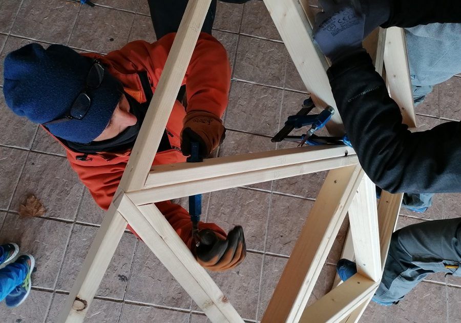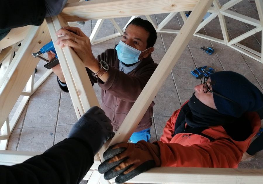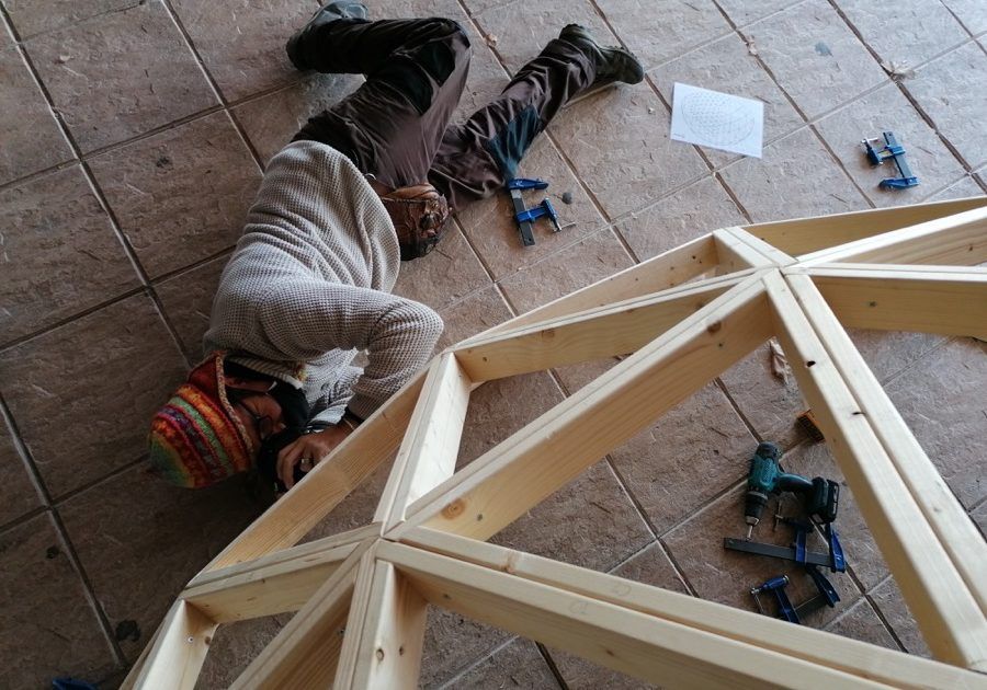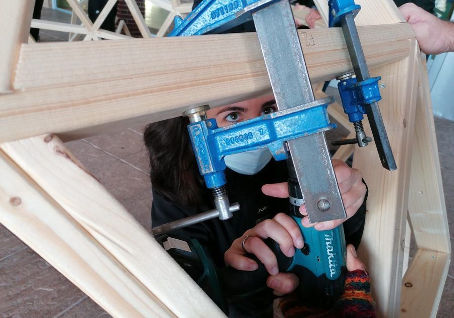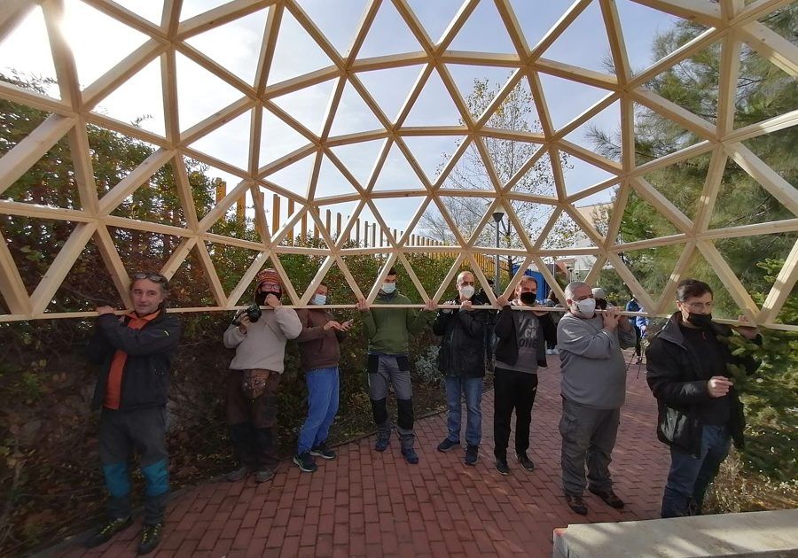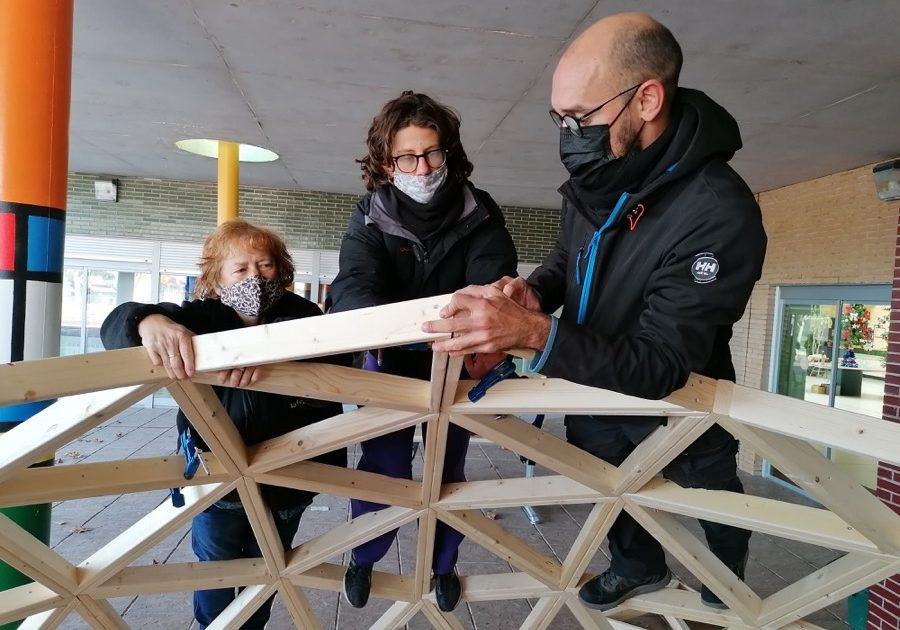 Como parte de un proyecto medioambiental que han puesto en marcha en este innovador Colegio ubicado en Villalbilla, Madrid, hemos construido este fin de semana un domo de 4 metros de diámetro, que, unido a otro previsto para febrero, formarán un aula de la naturaleza para sus alumn@s.