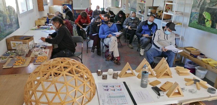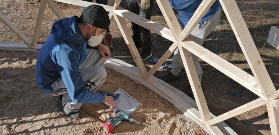 En Guadalajara, hemos realizado el pasado fin de semana el que ha sido el curso número 60 de los que llevamos hasta la fecha. Hemos construido un domo geodésico de 5 metros de diámetro al que además hemos añadido el hueco para la puerta.
