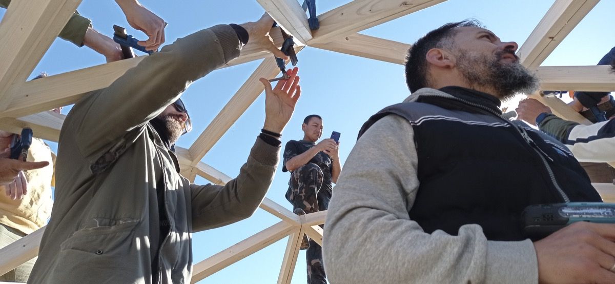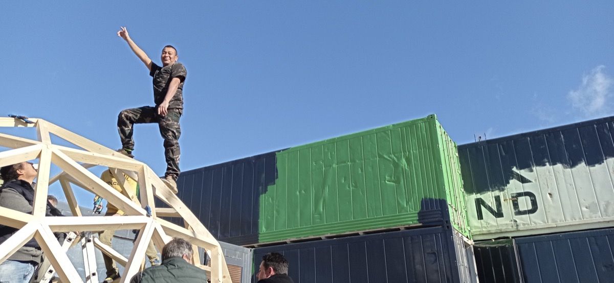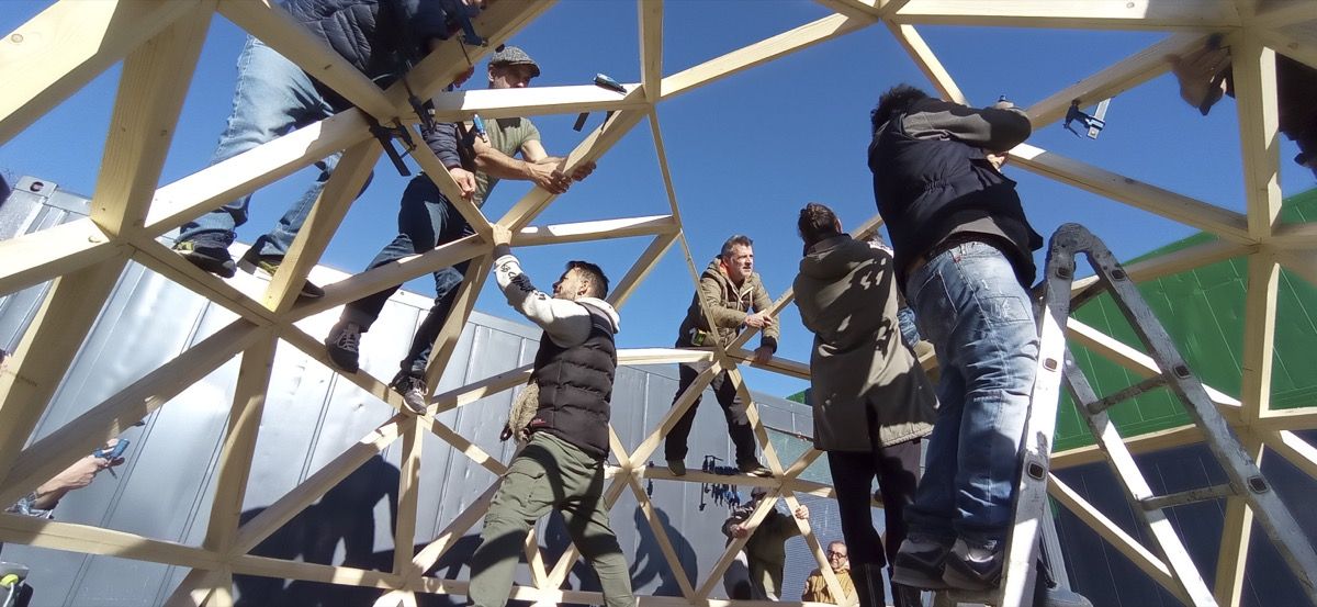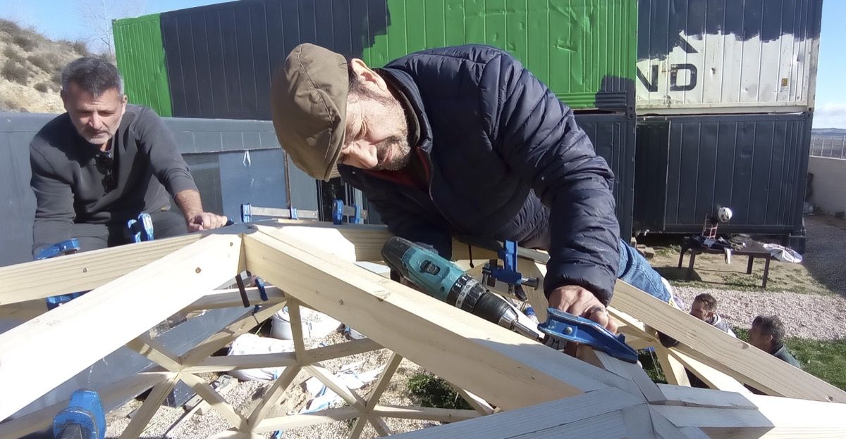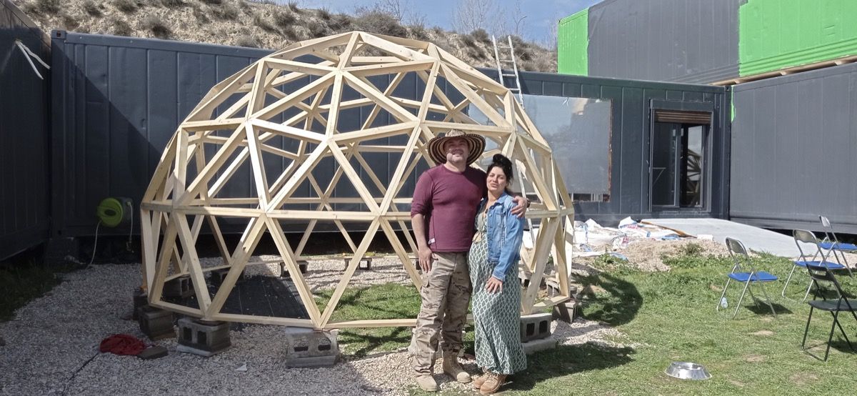Guillermo y Adriana lo colocarán sobre los contenedores que tienen adaptados, para crear un dormitorio geodésico en segunda planta, desde el que observar el firmamento. Un alojamiento rural, original y diferente.