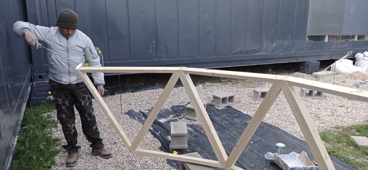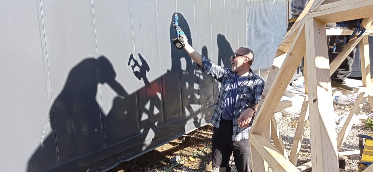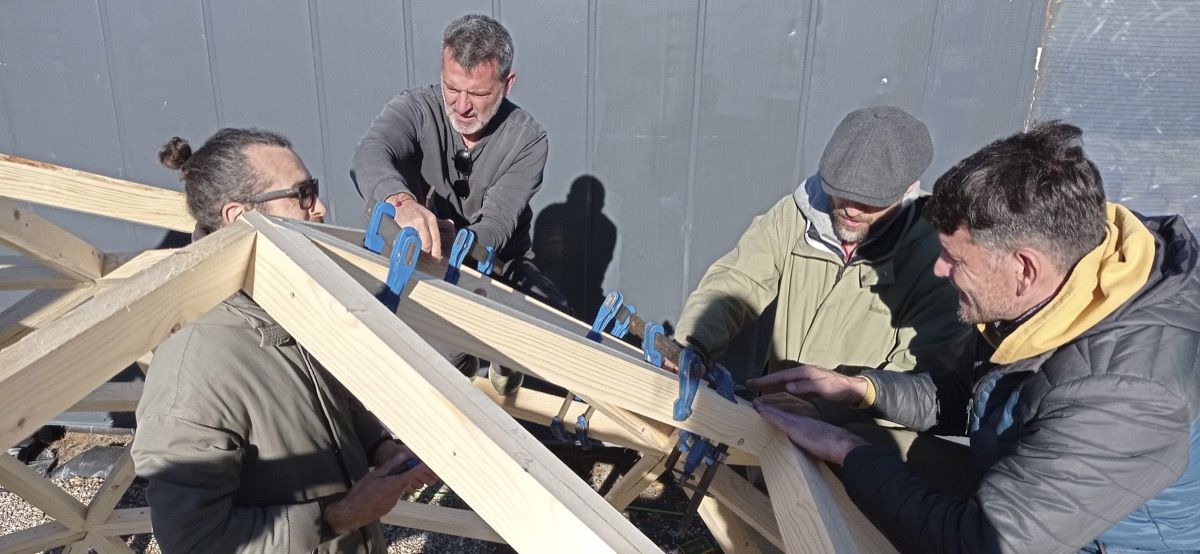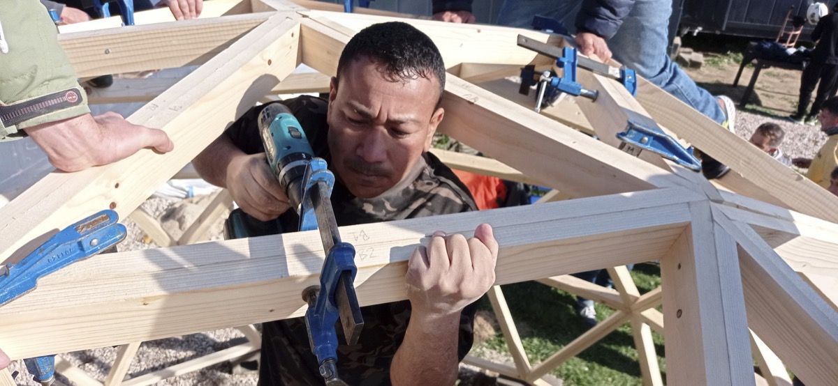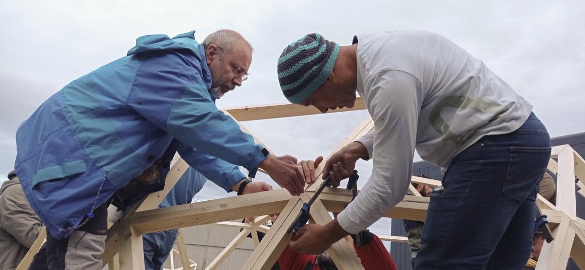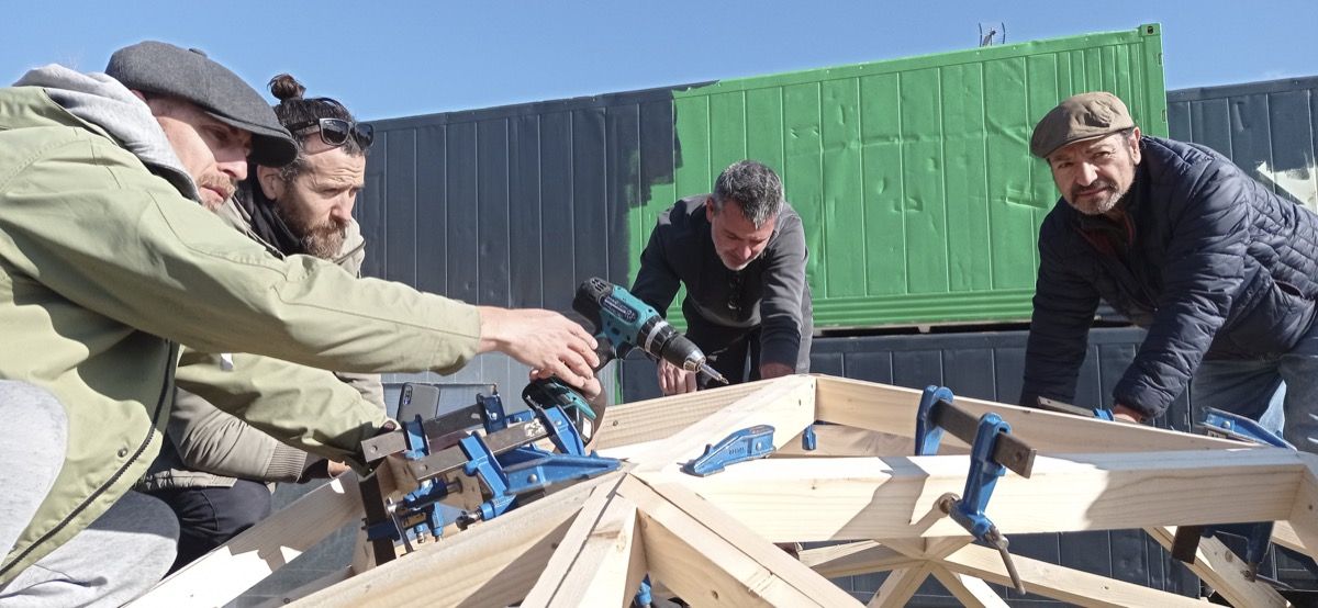 Guillermo y Adriana lo colocarán sobre los contenedores que tienen adaptados, para crear un dormitorio geodésico en segunda planta, desde el que observar el firmamento. Un alojamiento rural, original y diferente.