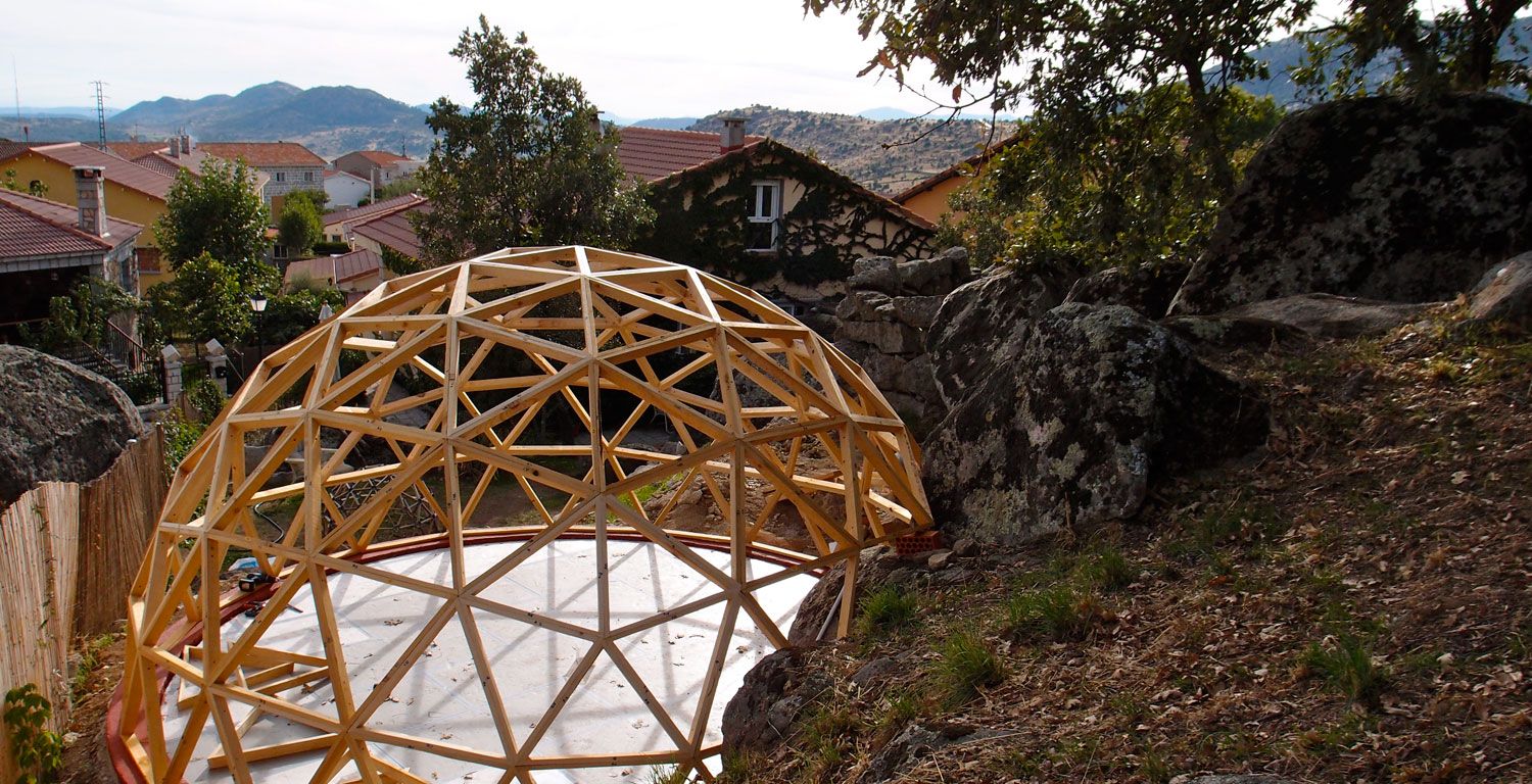 Las cúpulas o domos geodésicos se diseñan a partir de un poliedro denominado icosaedro, que está constituido por 20 triángulos equiláteros. Proyectando las aristas de estos triángulos planos a una superficie esférica, originamos triángulos equiláteros curvados, y así creamos un domo o cúpula geodésica.