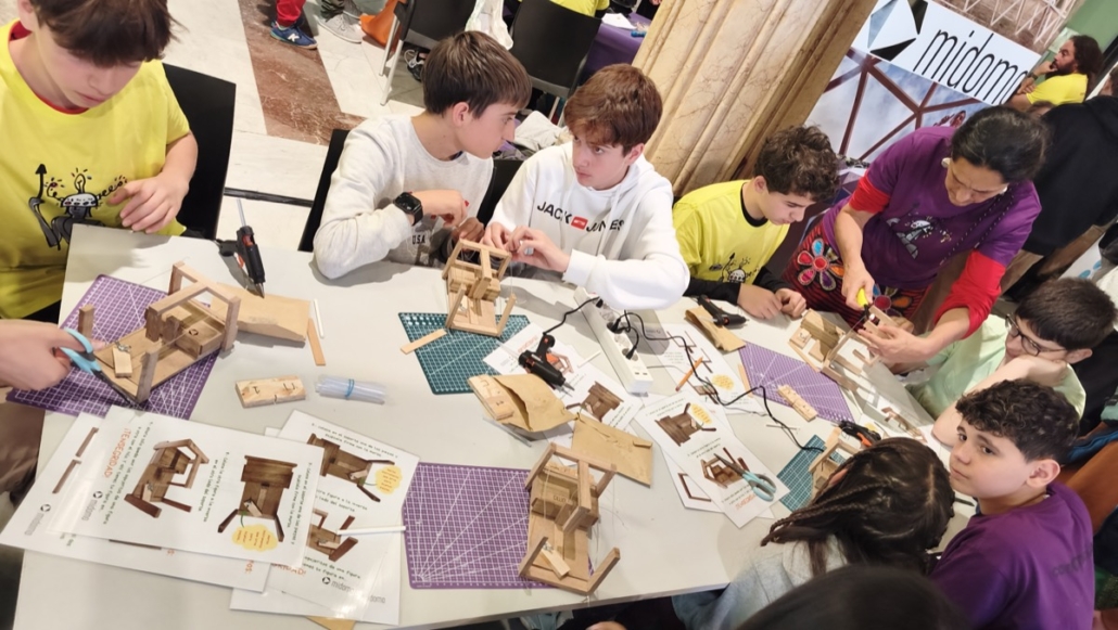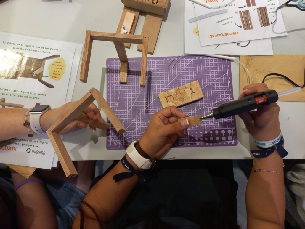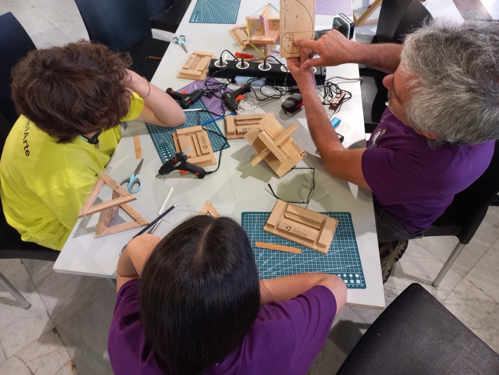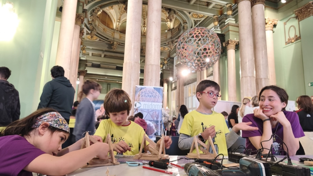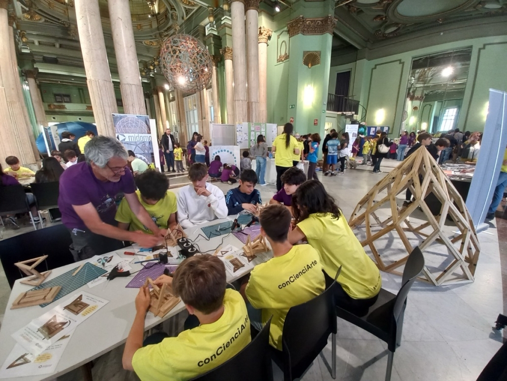 Midomo ha participado un año más en la Feria ConCienciArte que organiza el Círculo de Bellas Artes de Madrid. Esta edición hemos ido con nuestros talleres «Magia en Equilibrio. Jugando con la Tensegridad« y durante dos días intensivos hemos estado construyendo figuras de madera que se sostienen en un curioso equilibrio, con niños y niñas, adolescentes y con profesores motivados y familias curiosas al completo.