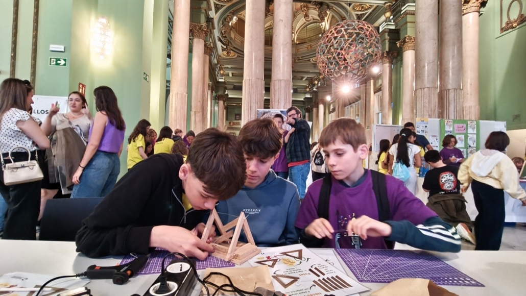 En esta feria se fusionan arte y ciencia en un espacio de creatividad y aprendizaje experiencial. Durante dos jornadas, el Salón de baile se transforma en una feria científica donde alumnado de distintos centros presenta proyectos que exploran la relación entre arte, tecnología y conocimiento: desde arte cinético, robótica aplicada a los museos o el uso de ferrofluidos, hasta propuestas sobre neurociencia, cerámica, ecología o ilusiones perceptivas.
