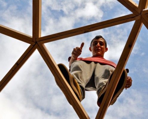 Bajo el influjo de «las Machotas», esas poderosas montañas que nos rodean, hemos llevado a cabo un curso de construcción de domos geodésicos. La amenaza de lluvia no ha detenido este evento, que hemos rematado con una charla sobre distintas formas de aislar un domo, por parte de Daniel Barrio, de Minka.