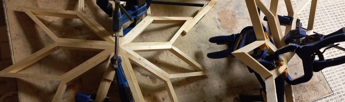 Es una estructura más compleja que la de los domos pues, en este caso cada arista lleva tres tipos de ángulo: el axial, el de triángulo y el diedro y además los ángulos son tan agudos que no se pueden realizar con una ingletadora, hay que utilizar una serie de inventos caseros para poder realizarlos.